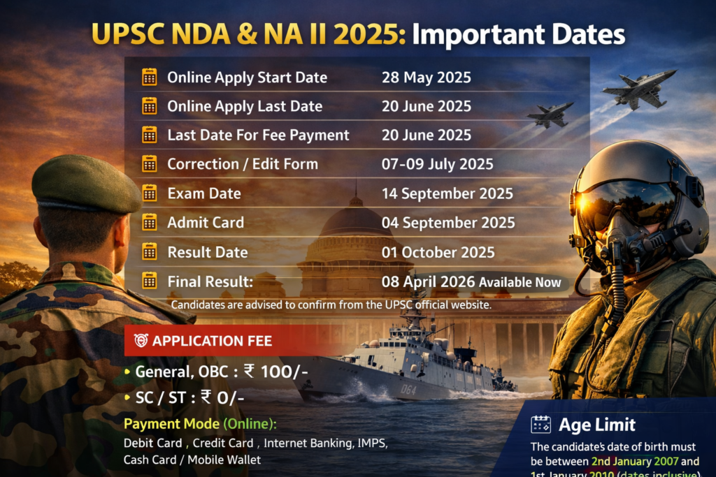 Latest Update: Union Public Service Commission (UPSC) has officially released the NDA & NA II Final Result 2026. Candidates who appeared in the examination can now check their final selection status through the official portal.
